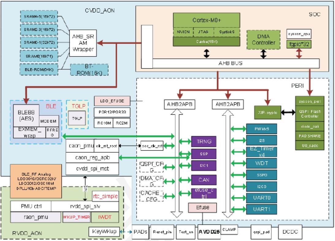 巨微代理英尚微電子介紹一款藍(lán)牙低功耗無(wú)線(xiàn)通信MCU芯片MS1636,MS1636(神農(nóng))是一款高性能,低成本,超低功耗的無(wú)線(xiàn)通信MCU芯片。該芯片不僅集成一個(gè)可以工作到高達(dá)64MHz的32位的精簡(jiǎn)指令集的(RISC)的高效處理器,還集成一個(gè)功能豐富的藍(lán)牙5.1通信收發(fā)模塊。使其應(yīng)用場(chǎng)景大大拓寬。MS1636的開(kāi)發(fā)環(huán)境兼容主流通用嵌入式MCU業(yè)態(tài),其內(nèi)部塔配4Mbit FLASH作為程序和數(shù)據(jù)儲(chǔ)存空間,并配有128K Bytes的客戶(hù)可用SRAM,易于方案開(kāi)發(fā)商(IDH)得心應(yīng)手的開(kāi)發(fā)目標(biāo)產(chǎn)品。