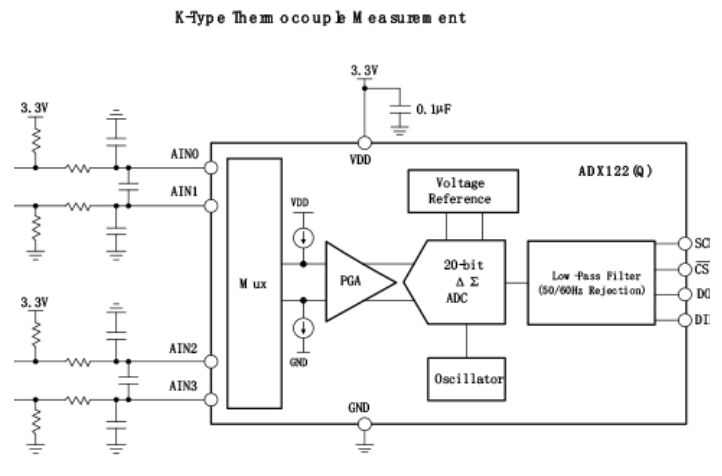 ADX122(Q)內部數字濾波器提供靈活的輸出數據速率,從10SPS到3571SPS。抗工頻干擾濾波器可以配置為50Hz或60Hz抑制模式,也可以配置為同時抑制50Hz和60Hz工頻干擾。在連續轉換模式或單次模式下工作。內部濾波器在兩種模式下都是單周期穩定的。單次模式轉換一次后器件自動掉電;因此,空閑期間的功耗顯著降低。ADC轉換結果通過SPI™接口傳輸。同時ADX122(Q)可以工作在較寬的電源范圍,這些特性使其非常適合功率和空間受限的傳感器測量應用。