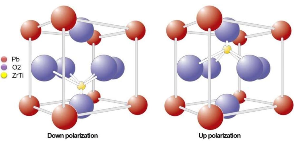 這些吸引人的特性是鋯鈦酸鉛(PZT)是其中一種材料的鐵電性能的結果。PZT具有鈣鈦礦晶體結構,中心有一個陽離子(見圖1)。該陽離子可以處于兩個位置之一,并且可以通過施加電場來切換位置。每個轉換都會產生“開關電荷”(Q s),可以將其讀取以表示邏輯1或0。